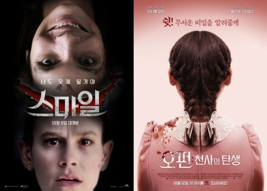 영화 '스마일'(왼쪽)이 지난 6일, '오펀: 천사의 탄생'이 지난 12일 각각 개봉해 관객들을 만나고 있다. /각 영화 포스터 |