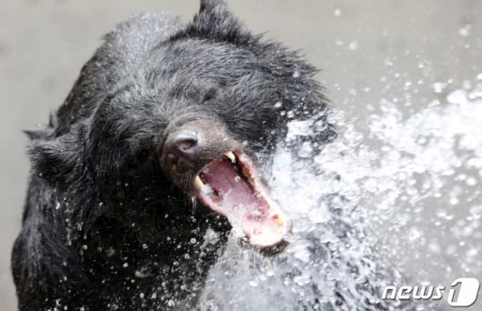 (세종=뉴스1) 장수영 기자 = 태풍의 영향이 자나가고 다시 더위가 찾아온 16일 세종시 베어트리파크에서 반달가슴곰들이 시원한 물줄기를 맞으며 더위를 식히고 있다. 2019.8.16/뉴스1 |