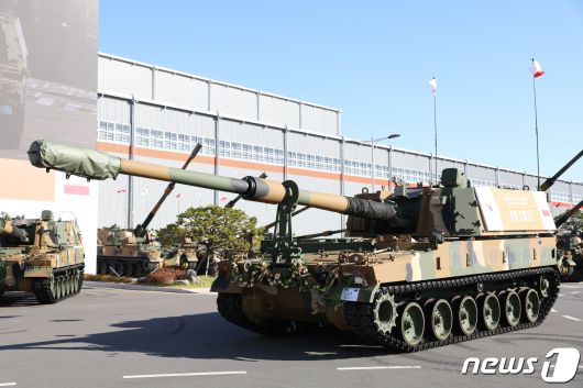 (서울=뉴스1) 이장호 기자 = 폴란드에 수출될 K9 자주포와 K2 전차가 첫 출고됐다.