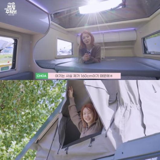계속해서 캠핑카 설명을 이어가던 초아에게 제작진은 “비닐 언제쯤 뗄 거냐”고 물었다. 이에 초아는 “캠핑 짐들이 모래가 많이 묻지 않냐. 비닐은 나중에 뜯을 거 같다”라고 답했다.