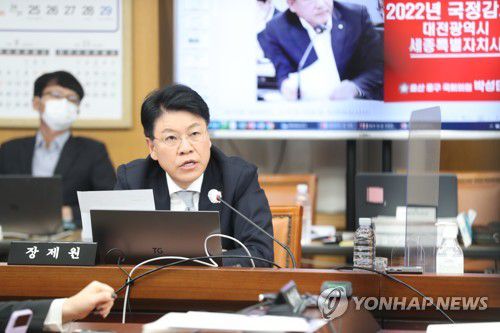 (대전=연합뉴스) 정윤덕 기자 = 20일 진행된 국회 행정안전위원회의 대전시 국정감사에서 여당 의원들은 야당 출신인 전임 시장의 정책을 강력히 비판했다.
