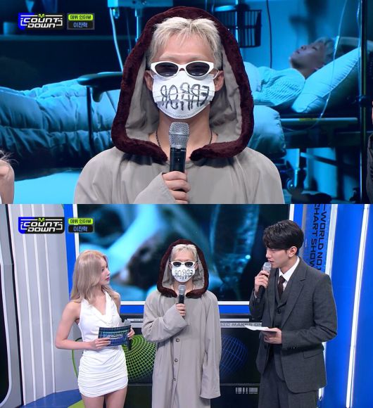 무대에 앞서 MC (여자)아이들 미연, 배우 남윤수와 함께 인터뷰도 함께했다. 자신의 앨범명인 '에러'가 새겨져 있는 흰 마스크를 쓰고 등장한 이찬혁은 MC들의 계속되는 질문에도 굳은 침묵만을 지켰다.