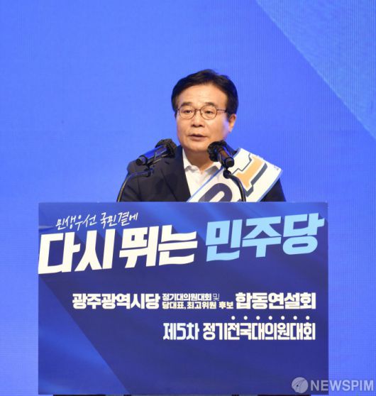 [광주=뉴스핌] 전경훈 기자 = 21일 오후 광주 서구 치평동 김대중컨벤션센터에서 열린 민주당 광주시당 대의원 대회에서 이병훈 민주당 광주시당위원장 후보가 연설을 하고 있다. 22022.08.21 kh10890@newspim.com |