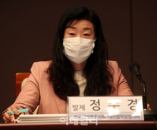 [이데일리 김태형 기자] 정수경 한국여성변호사회 대외렵력상임이사가 24일 한국프레스센터에서 열린 '스토킹 처벌 및 피해자 보호 강화' 토론회에서 '스토킹 피해자 보호 강화를 위한 대응 방안' 주제발표를 하고 있다. '여성 기자 정책 점검 프로젝트' 제2주제로 열린 이번 토론회는 한국여성기자협회가 주최했다.