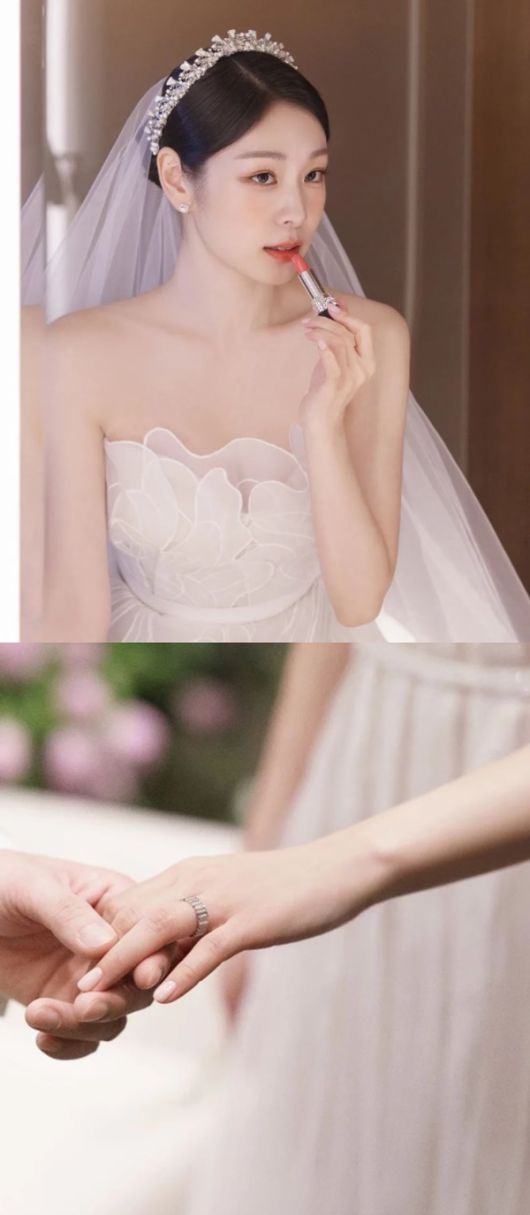 사진 속 김연아는 웨딩드레스를 입고 거울 앞에 선 채 립스틱을 바르고 있다. 이어 자신이 앰배서더로 활동 중인 브랜드의 화장품으로 메이크업을 받는 등의 모습이 공개됐다.