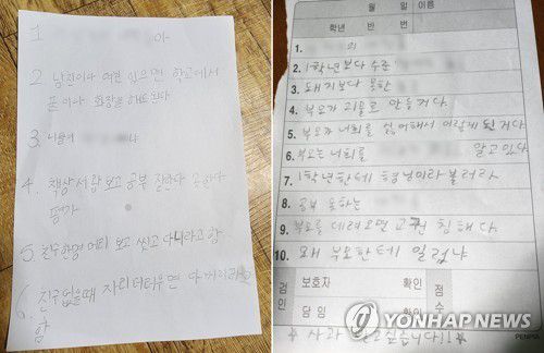 학부모들이 그사이 학생들로부터 받은 피해 진술서에는 A 교사 폭언이 기록됐다.