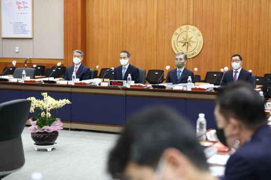26일 서울 서초구 내곡동 국가정보원 청사에서 열린 국회 정보위원회의 국정원에 대한 국정감사에서 김규현 국정원장이 국정감사 시작을 기다리고 있다. 왼쪽부터 권춘택 1차장, 김 원장, 김수연 2차장, 백종욱 3차장. 조상준 기조실장은 국감 시작 전 일신상의 이유로 사의를 표명해 국정감사에 출석하지 않아 왼쪽 자리가 빈자리로 남아있다. 공동취재사진 |