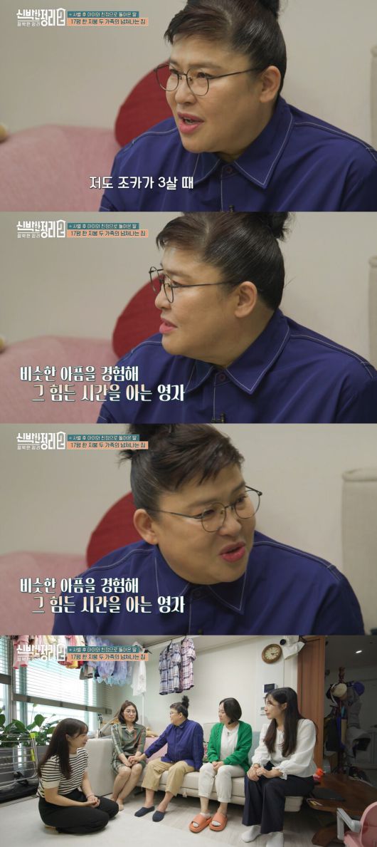 의뢰인 언니의 사연을 듣고 있던 이영자는 눈물을 훔치며 "저도 조카가 3살 때 형부가 떠났는데 옆에서 지켜보는데 가슴이 찢어졌다. 우리 언니는 애써 울지 않고 용기를 냈다. 남 같지 않다. 딸의 뒷모습을 바라보는 (의뢰인 언니)엄마는 얼마나 아팠겠냐"라고 공감했다.