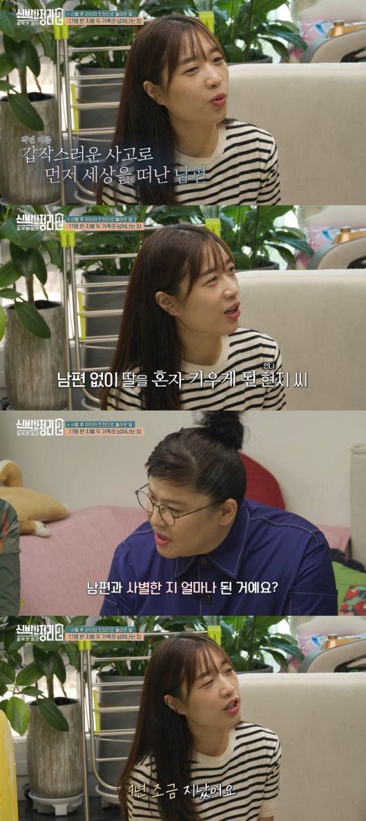 이영자는 의뢰인 언니에게 "3년 만에 친정집으로 돌아온 이유는 뭐냐"고 물었다. 이에 언니는 "작년 여름에 남편이 갑작스러운 사고로 세상을 먼저 떠났다. 딸을 데리고 혼자 살아야 하나 했는데 부모님이 '너도 마음을 추스려야 하니까 집으로 와'라고 하시더라. 제가 부모님 집에 다시 들어가면 안 그래도 부모님 두 분이 살기에도 비좁은데 내가 딸을 데리고 가도 되나 싶었다"라고 털어놨다.