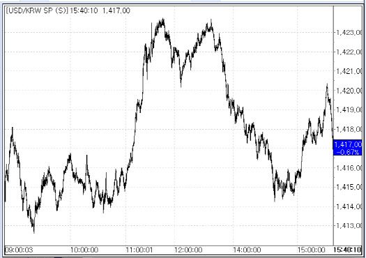 김승혁 NH선물 연구원은 “결제 수요 때문에 오전 낙폭을 줄였던 원·달러 환율은 엔화 급등, 위안화 상승에 영향을 받았고 국내증시도 상승하면서 1410원대에서 하락 마감했다”고 설명했다.