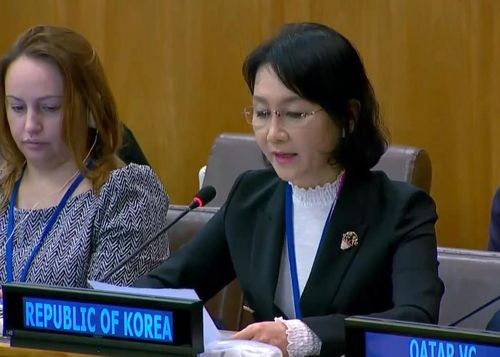 유엔총회 제3위원회에서 발언하는 이신화 북한인권국제협력대사 |