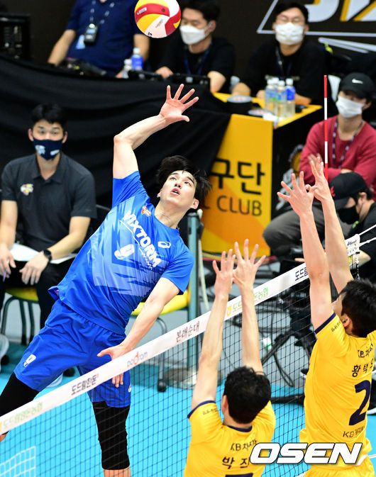 [OSEN=의정부, 최규한 기자] 27일 오후 경기도 의정부체육관에서 ‘도드람 2022-2023 V리그’ 남자부 KB손해보험과 한국전력의 경기가 열렸다. 1세트, 한국전력 임성진이 공격을 시도하고 있다. 2022.10.27 / dreamer@osen.co.kr