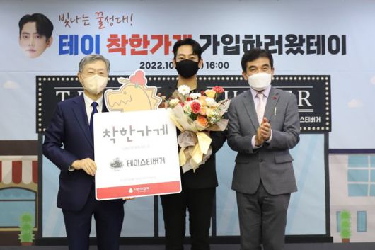 지난 27일 서울시 중구 사랑의열매 회관에서 진행된 ‘착한가게’ 가입식에는 가수 겸 ‘테이스티버거’ 대표 테이를 비롯해 사랑의열매 조흥식 회장, 황인식 사무총장 등 관계자들이 함께했다.
