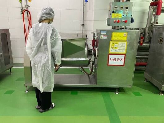 사고가 일어난 혼합기의 날개는 1분에 약 14바퀴를 돌았다. 속도가 아주 빠른 편은 아니었지만 점성이 높은 소스라 회전날개만으로 잘 섞이지 않는 경우가 있었다. 그럴 땐 작업자들이 종종 기계에 손을 넣어 재료를 섞었다. “혼합기가 돌아가도 재료가 가장자리로 밀리거나 뭉치는 일이 많아요. 그러면 저희가 회전날개 도는 박자에 맞춰서 손으로 싹, 하고 (중앙으로 재료를) 밀죠. 그러다가 박자를 한 번 놓치면 쇠로 된 날개가 손을 엄청난 힘으로 밀어요. 그때 (날개가 도는 방향상) 전진만 되고 후진은 안 되니까 상체가 그대로 빨려 들어가는 거예요.” 2016년까지 속재료 만드는 공정에서 일했던 SPL 노동자 ㄴ씨가 말했다.