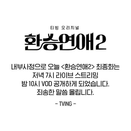 28일 티빙 측은 공식 SNS를 통해 "내부사정으로 티빙 오리지널 '환승연애2' 최종회는 오후 7시 라이브 스트리밍, 오후 10시 VOD 공개하게 됐다. 죄송한 말씀 올린다"라고 밝혔다.