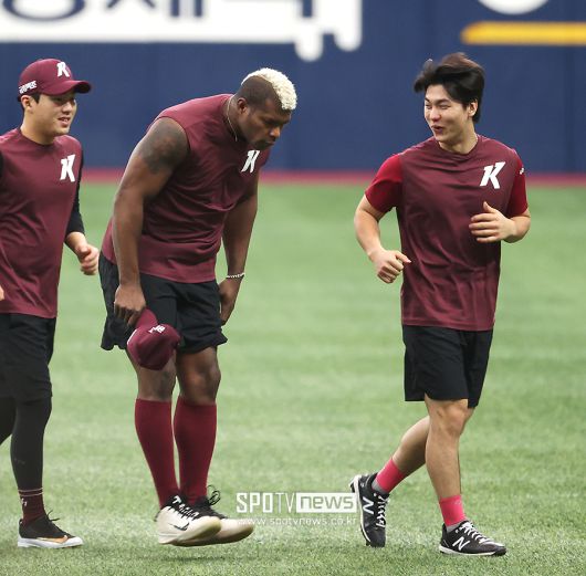 푸이그는 컨디션 좋은 모습을 보이며 4차전을 준비했다. '절친' 신준우에게 주먹다짐을 하는가 하면 모자를 벗기고 과격한(?) 장난을 쳤다. 신준우도 푸이그를 바라보며 미소지었다.