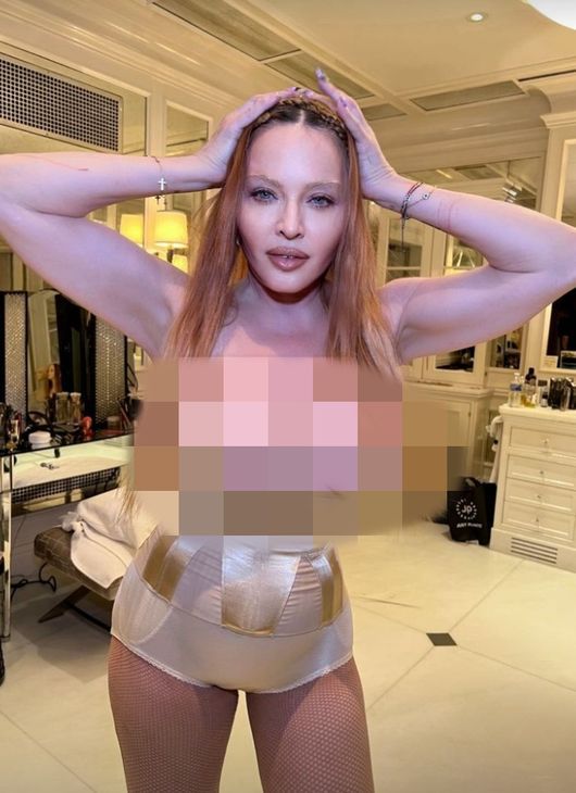 마돈나는 29일(한국시간) 자신의 SNS에 반 누드의 사진을 올리며 근황을 공개했다. 이모티콘을 사용해 가슴 부위를 그대로 노출하는 파격을 보였다.