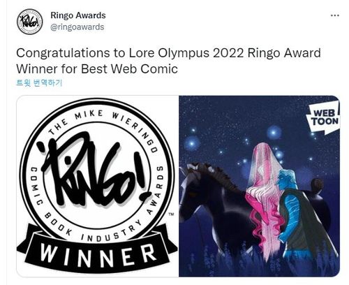 30일 링고상 공식 트위터 계정에 따르면 올해 미 볼티모어 코믹콘에서 열린 링고상 시상식에서 최고 웹코믹 부문 수상자로 '로어 올림푸스'가 선정됐다.