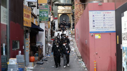 이 공간이 북쪽 거리 일부를 점유하면서 일대 통행로가 더 비좁아져 인파가 더 밀집된 이유 중 하나라는 지적이 나옵니다.