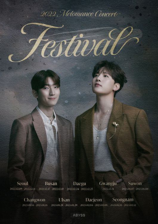 이에 따라 ‘2022 멜로망스 전국투어 콘서트 ‘페스티벌’(Festival)’의 부산 공연 티켓은 오는 7일 오후 8시에, 대구 공연은 오는 8일 오후 8시에 오픈된다. 또한 광주 공연 티켓은 오는 9일에 진행될 예정이다.