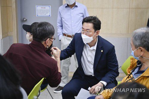 긴급재난지원금 신청 주민 의견 듣는 원강수 시장 |
