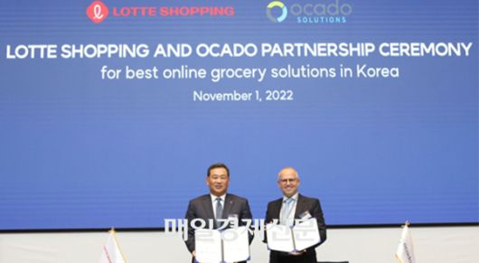Lotte Shopping signed an agreement with the parent of U.K.-based online supermarket Ocado.com to apply its fulfilment technology to Korea to enhance its online grocery business, according to Lotte Shopping on Tuesday.