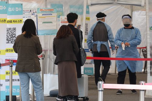지난달 28일 서울역 임시선별검사소에서 시민들이 검사 순서를 기다리고 있다. /연합 |