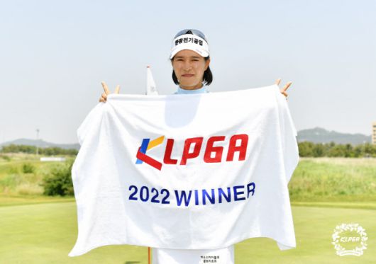 부형순이 KLPGA 챔피언스 투어 ‘PLK 챔피언스 클래식 2022’ 2차전에서 우승한 뒤 트로피를 들고 기뻐하고 있다. (사진=KLPGA) |