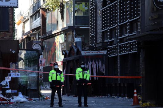 서울 용산구 이태원 압사 참사 현장이 경찰에 의해 통제되고 있는 모습. 뉴스1 |