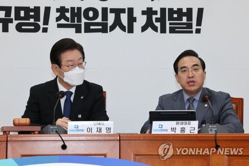 (서울=연합뉴스) 고동욱 정윤주 기자 = 더불어민주당 박홍근 원내대표는 7일 '이태원 압사 참사'와 관련해 "정부의 실정마저 무조건 감싸는데 급급한 '윤핵관'(윤석열 대통령 측 핵심 관계자)들과 여권 인사들이야말로 정쟁을 일으키는 주동자이고 참사를 덮으려는 방조자"라고 맹비난했다.