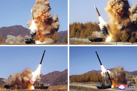 북한은 7일 화성-15형 개량형 추정 탄도미사일 시험발사 장면을 비롯한 군사작전의 구체적인 내용과 사진을 공개했다. [평양 노동신문=뉴스1] |