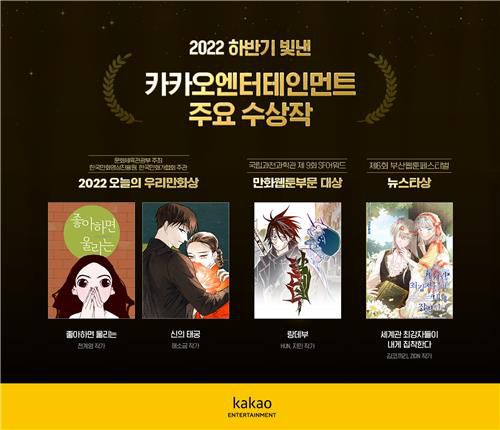 카카오엔터테인먼트는 자사 플랫폼 연재작이 최근 2022 오늘의 우리만화, SF어워드, 부산웹툰페스티벌 등에서 수상했다고 8일 밝혔다.