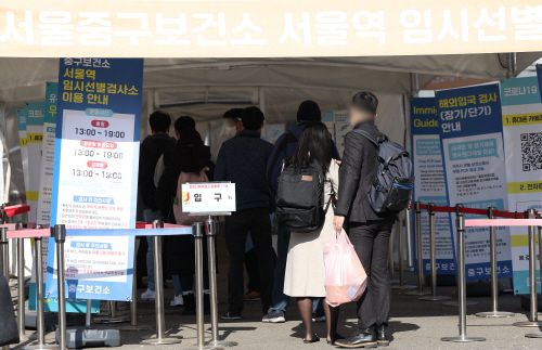 6일 오후 서울역광장에 마련된 임시선별검사소에서 시민들이 검사를 받기 위해 기다리고 있다. /연합 |