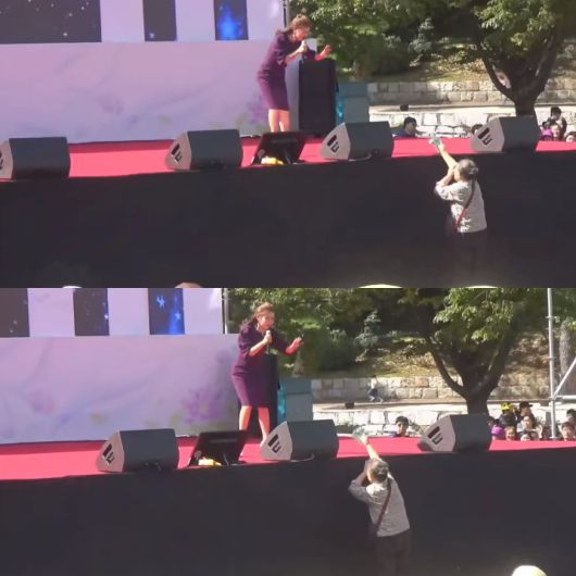 최근 여러 온라인 커뮤니티에서는 송가인의 무대에 팬이 난입한 영상이 화제가 됐다. 이 영상은 송가인이 2019년 10월 양산 통도사 영축문화 축제 무대에 올랐을 당시 촬영됐다.