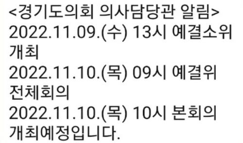 그러나 이날 '<경기도의회 의사담당관 알림>'이란 제목으로 이 같은 내용의 추경안 처리 일정을 담은 문자메시지가 일부 기자 등에 보내졌고, 양당과 의사담당관에 문의 전화가 이어졌다.