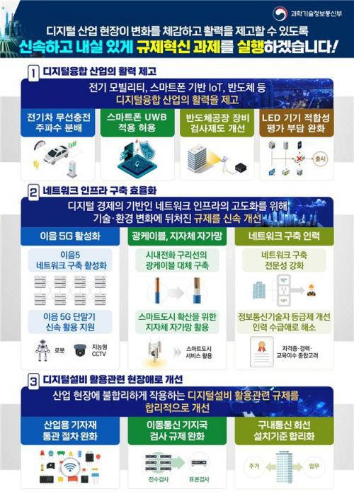 낡은 규제 때문에 치열한 글로벌 디지털 기술 경쟁에서 도태되지 않도록 대한상공회의소, 중소기업중앙회, 정보통신공사협회 등 업계와 지자체로부터 건의받아 선정한 과제들이다.