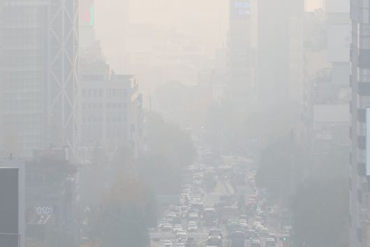 서울의 초미세먼지 농도가 ‘나쁨’ 수준을 보인 지난 9일 오전 서울 종로 일대가 미세먼지와 아침 안개로 뿌옇게 보인다. 연합뉴스. |