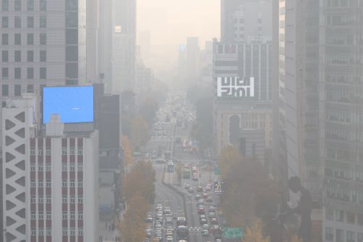 서울의 초미세먼지 농도가 ‘나쁨’ 수준을 보인 9일 오전 서울 종로 일대가 미세먼지와 아침 안개로 뿌옇게 보인다. (사진=연합뉴스) |
