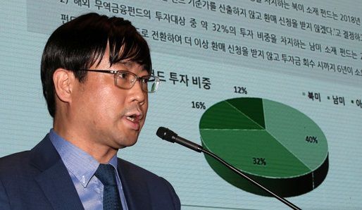 이종필 전 라임자산운용 부사장이 2019년 10월14일 오후 서울 영등포구 서울국제금융센터(IFC 서울)에서 라임자산운용 펀드의 환매 중단 사태와 관련해 기자 간담회를 하고 있다. 뉴시스 |