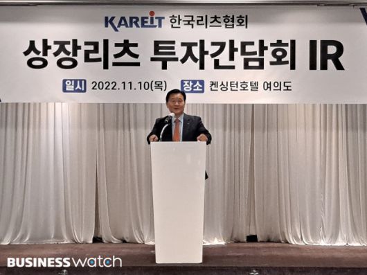 10일 한국리츠협회 주관으로 서울 여의도 켄싱턴호텔에서 열린 '2022년 하반기 상장 리츠 투자간담회'에서 정병윤 한국리츠협회장은 "(상장) 리츠는 부동산을 자산으로 삼은 안전한 배당상품임에도 금리가 올랐다고 주가가 곤두박질치고 있어 억울한 면이 있다"고 말했다.