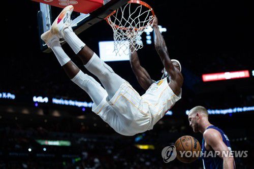 마이애미 지미 버틀러가 샬럿과 경기에서 호쾌하게 덩크를 꽂고 있다. |