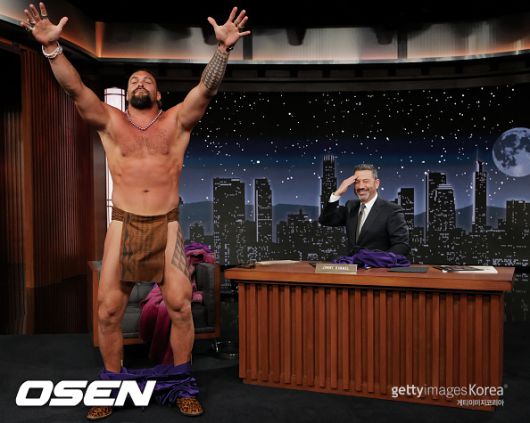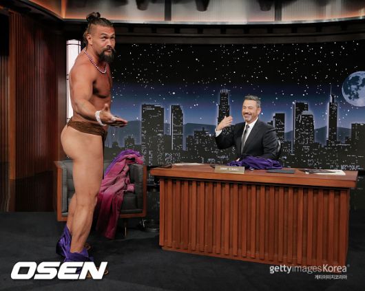 지난 10일(현지 시간) 제이슨 모모아가 미국 ABC 토크쇼 프로그램 ‘지미 키멀 라이브!’에 출연해 배우 겸 진행자 지미 키멜과 대화를 나누며 옷을 벗어던지는 기행을 펼쳤던 것으로 알려졌다.