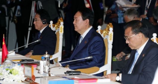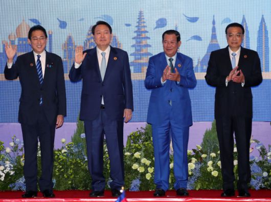 윤 대통령은 이날 캄보디아 프놈펜의 한 호텔에서 열린 아세안+3 회의 모두발언에서 “아세안과 한중일간 협력의 중요성이 그 어느 때보다도 큰 지금, 우리는 정치, 경제, 사회, 문화 각 분야에서 긴밀하게 협력하고 연대해 나가야 한다”고 밝혔다.