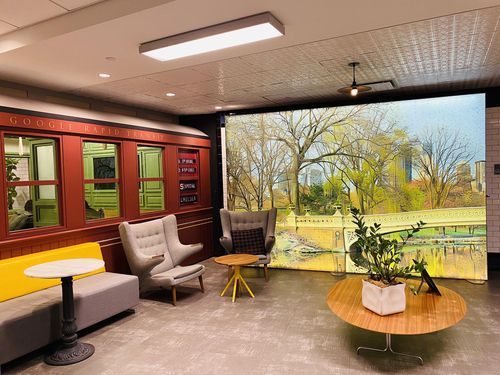 센트럴파크 그림과 전철 객차 모양의 휴게·업무공간이 어우러진 구글 뉴욕 오피스 |