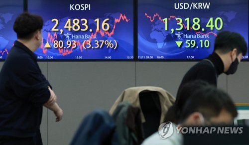 (서울=연합뉴스) 윤선희 기자 = 코스피가 외국인 투자자 매수에 힘입어 2,500에 바짝 다가섰다.