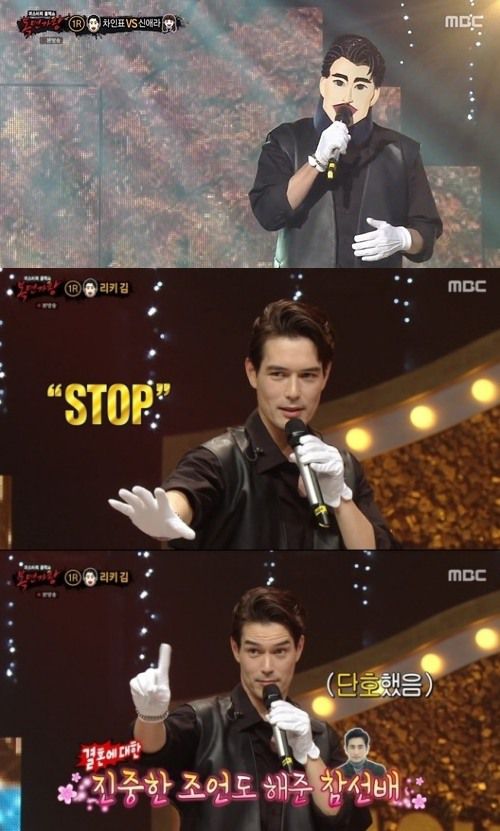 1라운드 두 번째 경연에서는 차인표와 신애라가 맞붙었다. 대결 결과 87 대 12로 신애라가 승리해 2라운드에 진출했다. 아쉽게 탈락한 차인표는 신촌블루스의 ‘골목길’을 부르며 복면을 벗었고, 그의 정체는 배우 겸 모델 리키 김이었다.