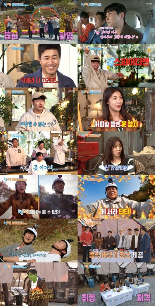 13일 방송된 KBS2 ’1박 2일 시즌4’(이하 ‘1박 2일’) ‘뉴친스와 함께하는 텐션 업 제철 음식 여행’ 특집에서는 특급 손님 강하늘 하지원과 함께하는 에너제틱한 여정으로 시청자들에게 ‘꿀잼’을 선사했다. 이에 힘입어 시청률 11.5%(닐슨코리아 전국기준)로 동시간대 1위를 차지했다.