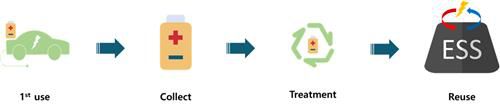자동차 폐배터리를 태양광 ESS에 재사용하는 전략 개념도 |