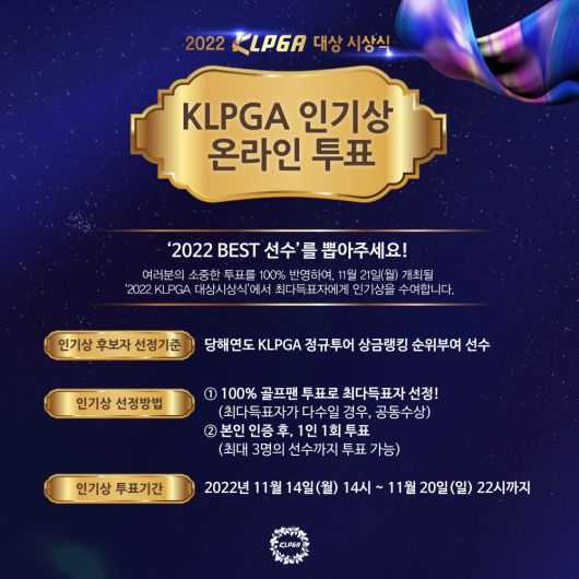 한국여자프로골프협회(이하 KLPGA)가 2022시즌 KLPGA투어 ‘인기상’ 온라인 투표를 진행한다.