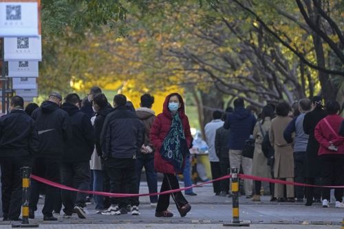 14일 중국 베이징에서 코로나19 검사를 받으려는 시민들이 길게 줄을 서 있다. AP연합뉴스 |